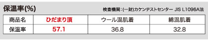 - ひだまりは他繊維に比べ、熱伝導率が低いダンロン®を使用することにより、外気温低下の影響を受けにくく、体温にあたためられた暖気を外に逃がさず、保温力を高めます。